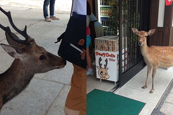 Oggi gli ungulati che, quando si avventurano nelle città italiane, generano scompiglio e vengono allontanati, a Nara vivono liberi a centinaia, interagendo intensamente con i visitatori dei parchi e dei templi, come il famoso Tōdai-ji. Anche perchè è possibile dar loro da mangiare e turisti e cerbiatti non aspettano altro.