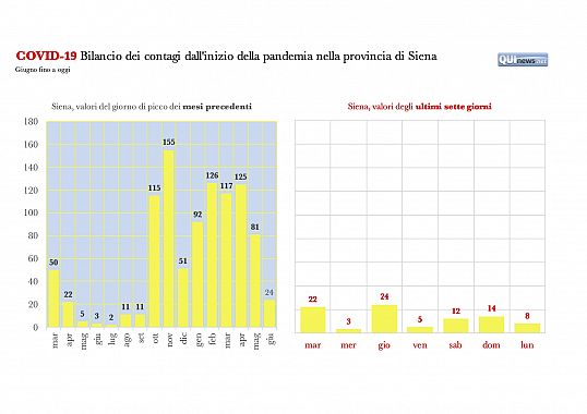 Ovviamente il dato è condizionato dal basso numero dei tamponi fatti. Nelle ultime 24 la Asl ha controllato solo 412 persone ed ha dichiarato definitivamente guariti 21 senesi.