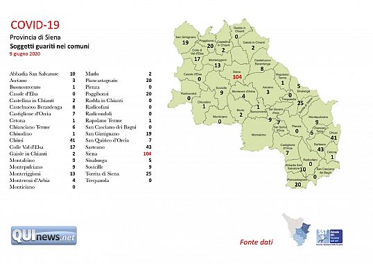 Per quanto riguarda le guarigioni, a Siena se ne registrano 4 in più rispetto a ieri. Nelle altre province che rientrano nella Asl Toscana Sud Est, sono 4 i guariti in più ad Arezzo e 2 a Grosseto. I guariti totali sono 1.337.