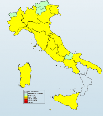 In linea la Toscana, dove l'incidenza nel periodo preso in esame è stata di 7,46 per 1.000 assistiti, il che genera una proiezione di oltre 27.200 toscani contagiati nella settimana monitorata.